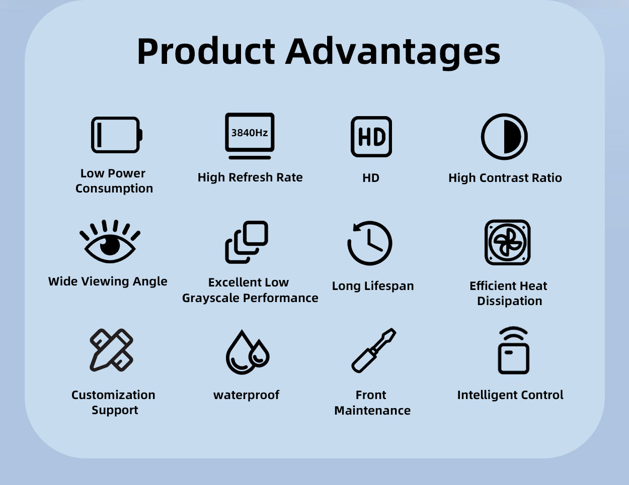 | Pixel Pitch(mm) | 1.25 | 1.53 | 1.86 | 2.5 |
